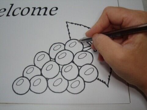 チョークアート3級講座 第2章 図案の写し方、カッティングシート、ブドウの描き方
