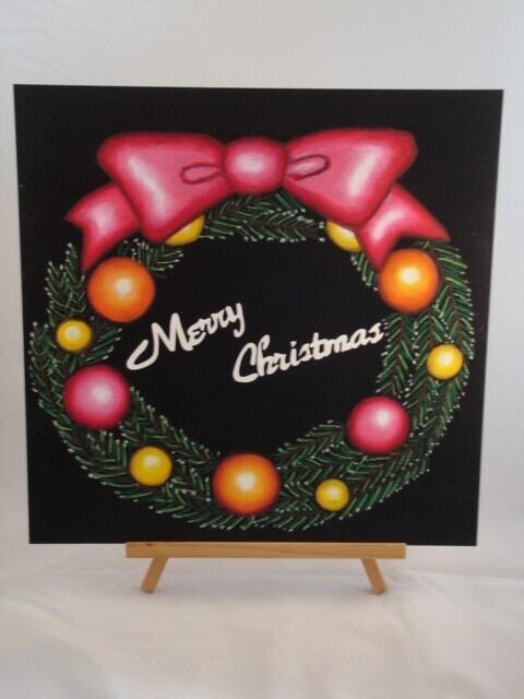 # チョークアート2級講座 第12章 クリスマスリースのボードの描き方