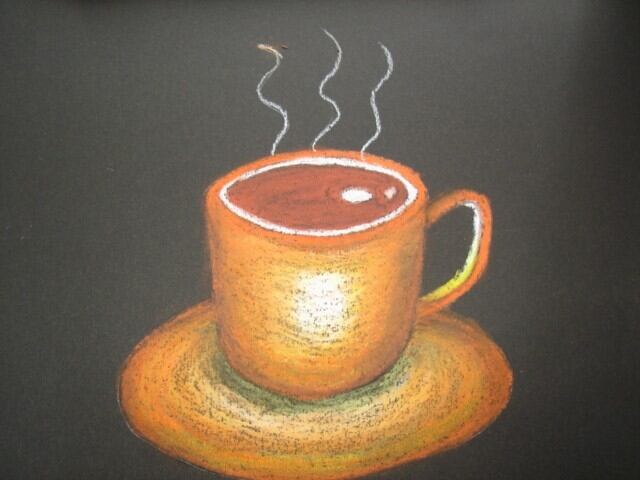 # チョークアート2級講座 第13章 コーヒーカップ&ソーサー、花の描き方、カフェボード1をオリジナルカラーで描く