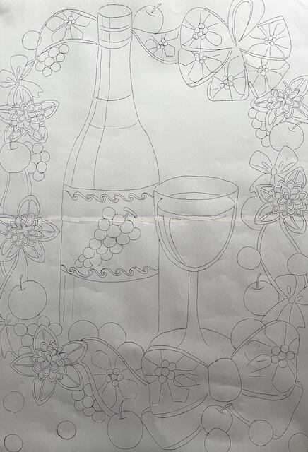 # チョークアート1級講座 第21章 ワインのボードの図案