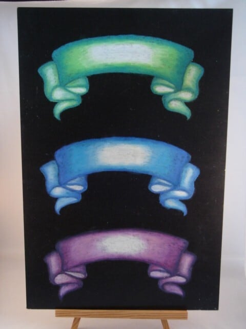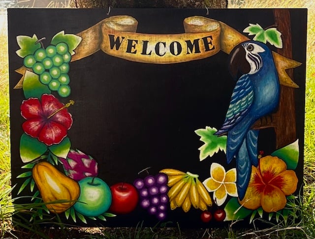 # チョークアート1級講座 第24章 2種類のリボンカラーの描き方とオウムのウェルカムボード