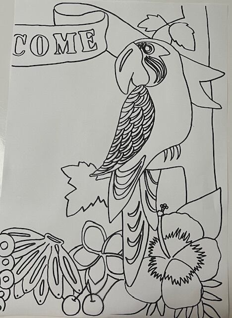 オウムの魅力を存分に伝えるアート制作を通じて、新たなスキルを身につける機会をご提供いたします。フルーツをカラフルな色使いで描き進め、自分自身だけの特別なアートを楽しんでいただけるでしょう。オウムのデザインを学びながら、さらなるアートの楽しさを発見していきましょう。(A3サイズ2枚で印刷してください。)