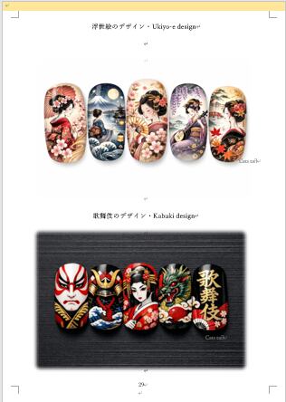 It includes messages of strength from powerful stones. The beauty infused with stone energy, the elegance that highlights special wedding moments, and styles that breathe the refined culture of Japan (such as ukiyo-e and kabuki) are its distinctive features. Designed for everyone from beginners to advanced nail artists, you are sure to find a style you love!